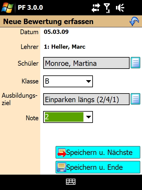 Speichern Sie zu jedem Fahrschüler beliebig viele Bewertungen zu allen möglichen Ausbildungszielen, um den Verlauf der Ausbildung im Überblick zu haben.