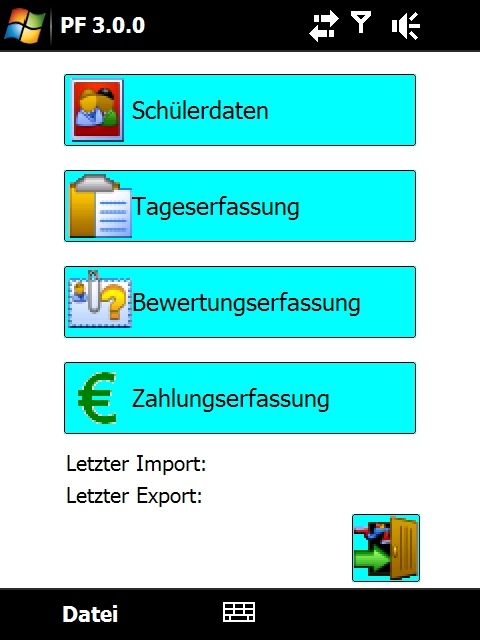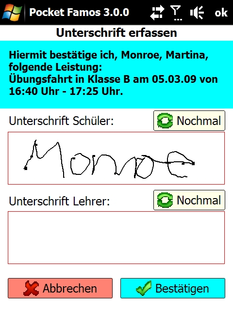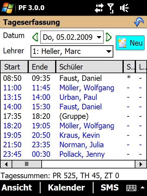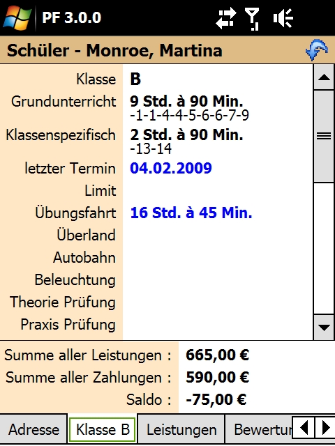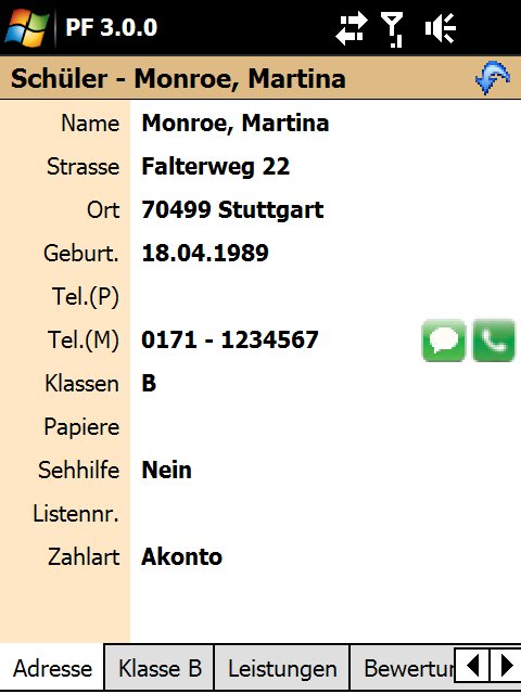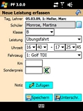 Erfassen Sie Fahrstunden, Unterrichte und alle sonstigen Tätigkeiten direkt mit dem PDA, inkl. Schülerunterschrift. Benutzen Sie den PDA, um Fahrstunden in der Zukunft zu planen oder importieren Sie Ihren Terminplan vom PC.