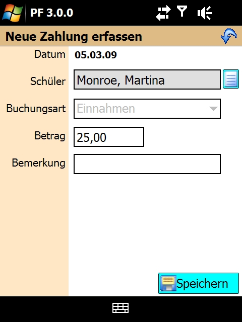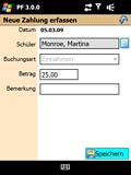 Auch Zahlungen können direkt am PDA erfasst und mit Visual.Famos auf dem PC synchronisiert werden, sobald Sie wieder im Büro sind.